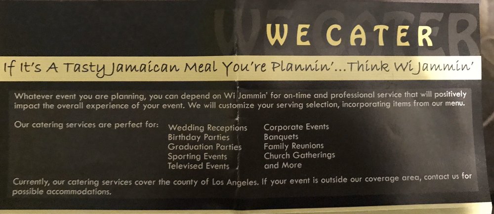 Welcome to Wi Jammin, a Caribbean cuisine hotspot located at 5103 W Pico Blvd in Los Angeles, CA. This restaurant offers a variety of options such as oxtails, goat curry, and delicious patties. Customers rave about the flavorful and generous portion sizes, making it a perfect spot for sharing with friends and family. The ambiance may not be the highlight, but the tasty dishes more than make up for it. With options for vegans and limited vegetarian choices, Wi Jammin has something for everyone. The service is friendly and attentive, adding to the overall dining experience. So, whether you're in the mood for a spicy goat curry or a savory patty, Wi Jammin is the place to be. Make sure to stop by and try out their menu - you won't be disappointed.